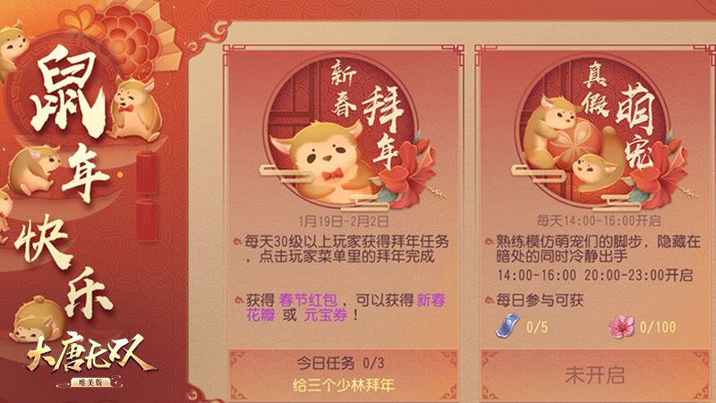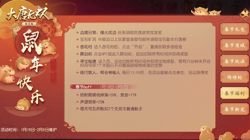 福利狂欢就“鼠”你最行 《大唐无双手游》金鼠年春节全解读