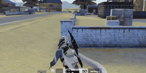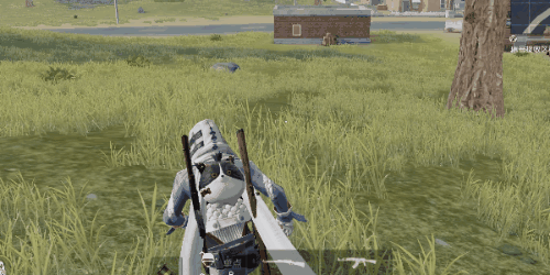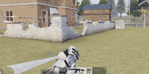 如果在房区遇袭,第一时间寻找反方向的围墙迅速靠墙趴下。在判明对手方向后,可以以爬行或者蹲姿的方式移动到对手的视野死角,然后再溜走。经过此次强化训练,补漏王找掩体的动作越来越干净利落了。