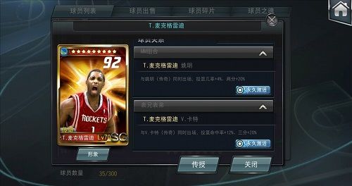 3)永久激活时,需消耗球员关系中其他球员的球员之魂各5个(如激活麦迪的MM组合球员关系,则需要红卡姚明之魂*5)