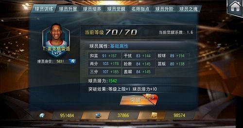 3)每一次等级突破后,球员等级上限将提高1级,同时将额外获得大量潜力点,球员品质越高、突破次数越多,所获的潜力点越多。