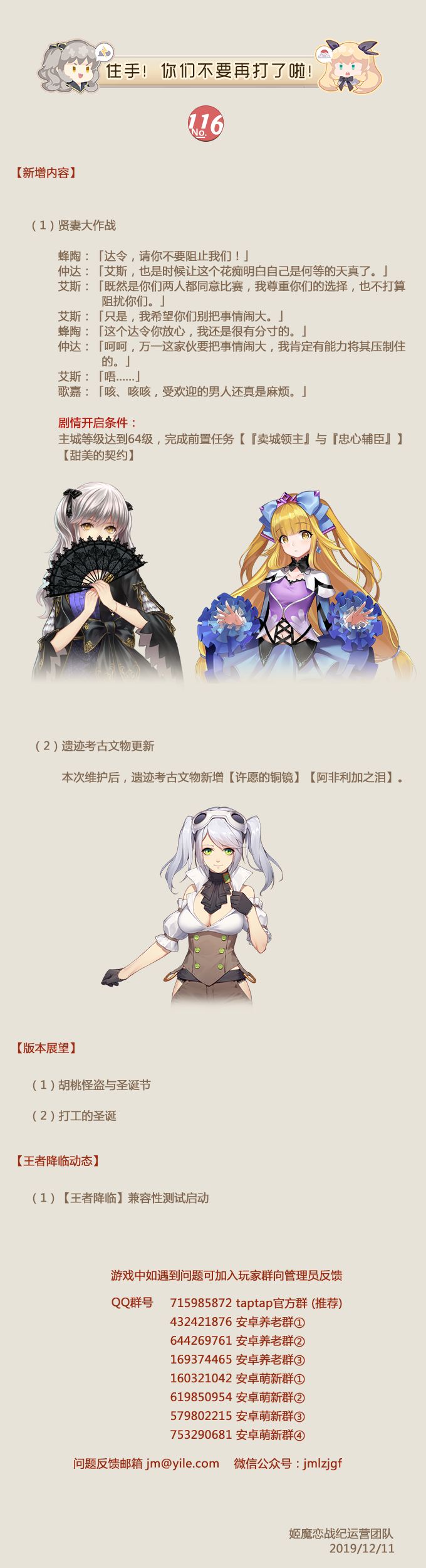 No.116 姬魔第二大陆《王者降临》测试预告&《姬魔恋战纪》12月11日更新公告