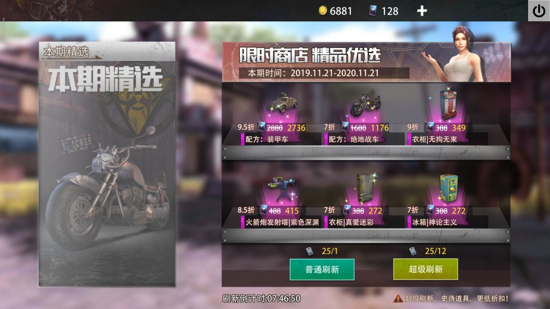 靠赛季送的刷新出来的,还是好贵,还得充一百才能买那摩托车。纠结。游戏好坑