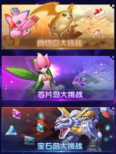 这次测试新加的功能,3个岛分别刷食物、进化芯片和宝石(宝石能量),每个岛各分10个难度,不同难度是根据普通关卡的推进进度开放的。每天把日常做完,就可以来着肝资源了。