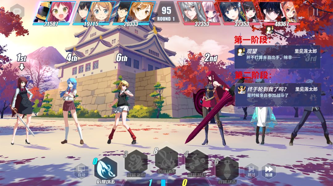 ③里见莲太郎:由于里见莲太郎会进行BUFF的切换,那么尽量留一下技能点和升华点,以备在集火他的时候使用技能更顺手一些。但当里见莲太郎进行BUFF的切换时,该回合他好像是不会行动的,把握好这额外的一回合,以免这一个回合过后其使用升华技或连携技,造成不必要的损伤。
