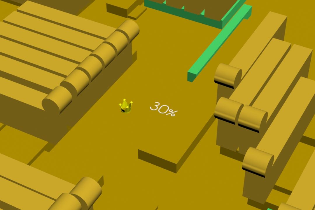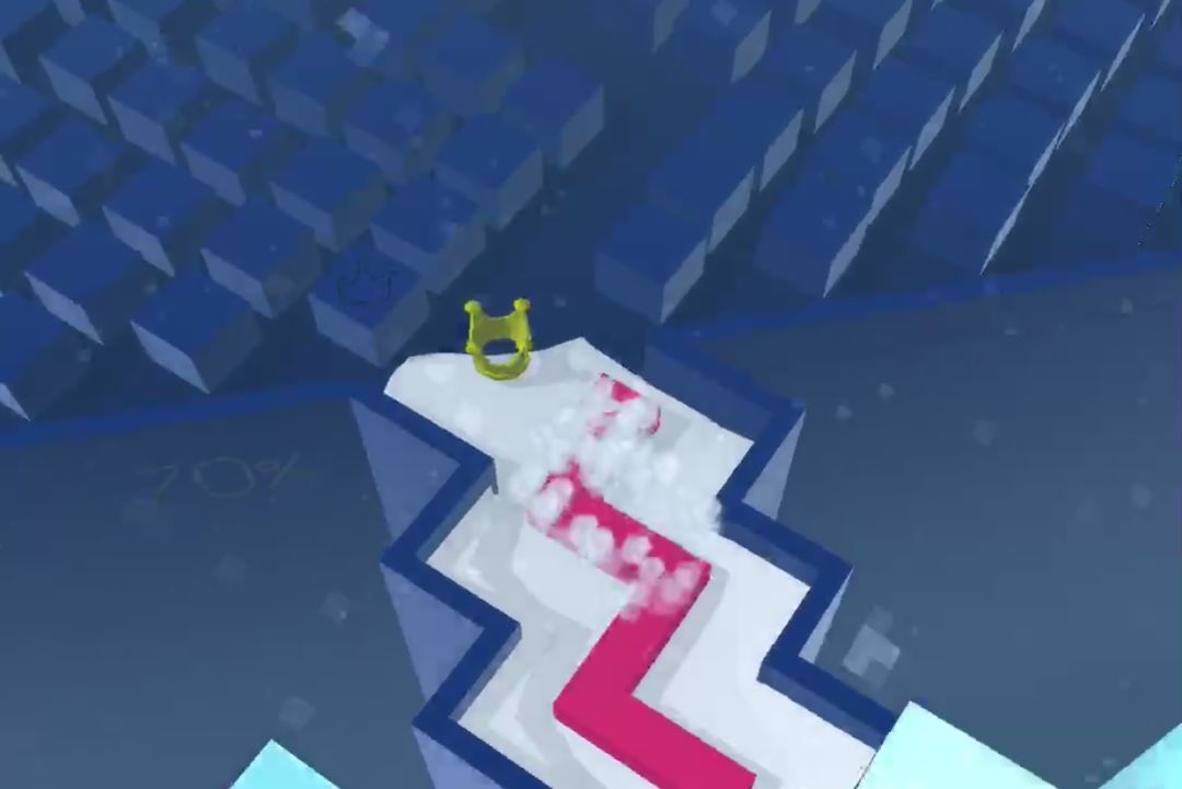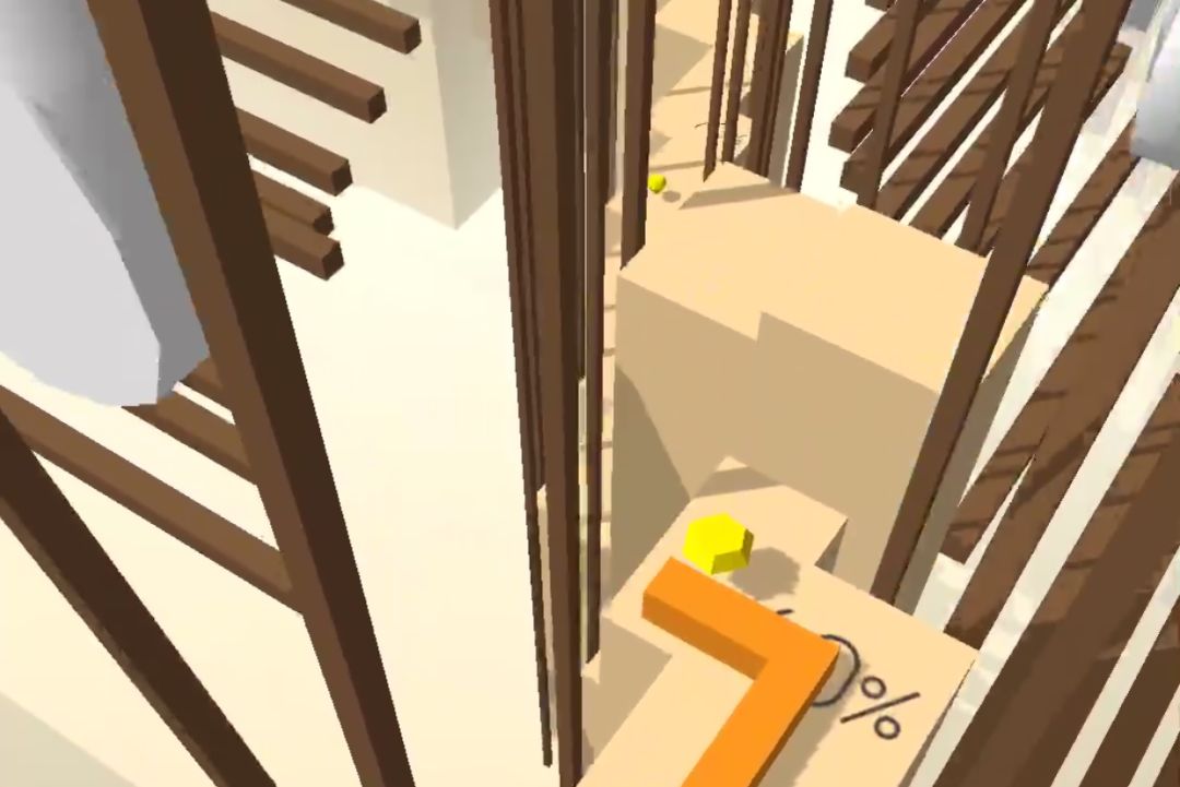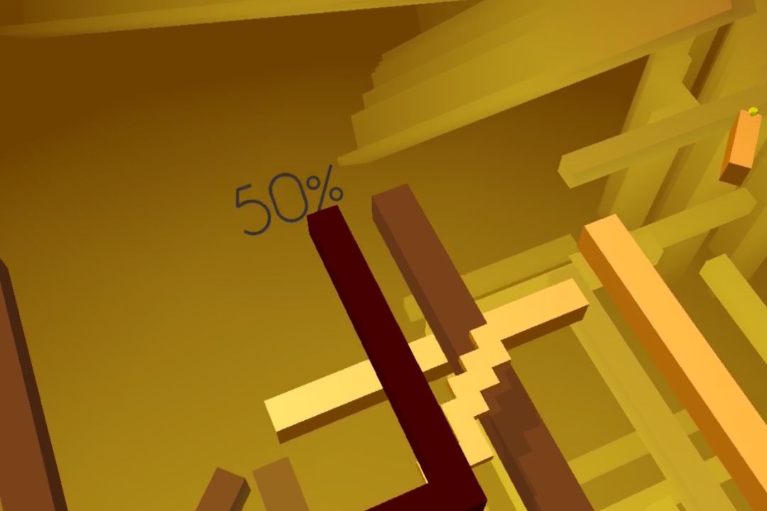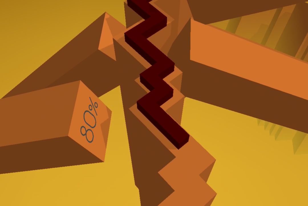 然而实际上,在老版本并非如此。在某些早期版本里,竖屏都可以轻易看见80%和90%标记的存在。80%是在朝着线撞击过来的某一根柱子头处,90%则是在柱子壁上,这两个百分比标记跟线距离不远,甚至在最后完成关卡后的视角左下角就是90%标记本身。