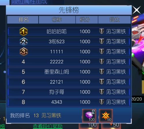 每次战斗结束都会获得相应的排位积分,你的积分越高,那你就会出现在先锋榜上