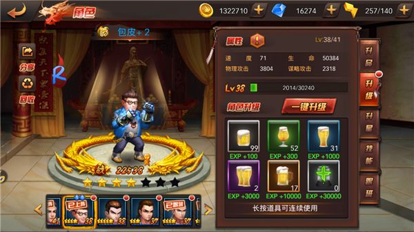 当我们卡在某个关卡的时候,我们首先需要排查的问题是我方主要输出是否能力不足后者有着短板角色?点击自己的主要输出人物,看下队伍中角色是否需要升级等操作,因为角色的升级是会增加各项面板值的,如果出现某个角色能力过于低下的情况,请立马着手培养。