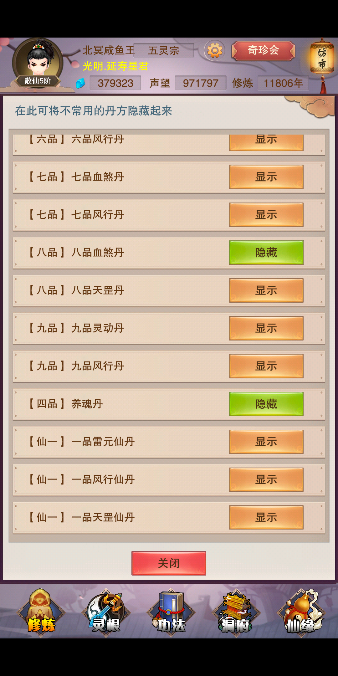 从散仙一刷到散仙五,六进九星门派都是五灵,肯定被另外两个门派拉黑名单了,现在懒得出去了 把丹房蹲穿,至少领悟一个体魄或浑天丹方才出关
