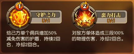 初始开启2个技能:一个减伤,一个单体伤害。