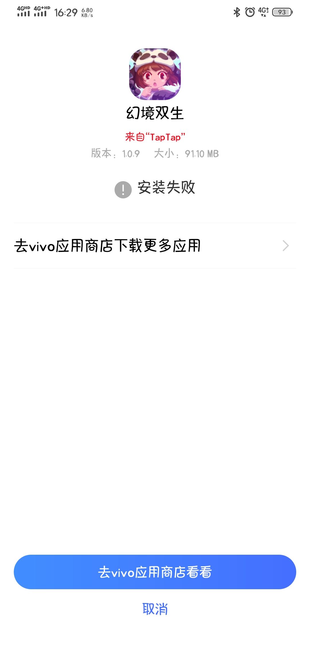 手机型号:vivo nex s安卓系统版本:安卓9反馈内容:安装失败游戏截图: