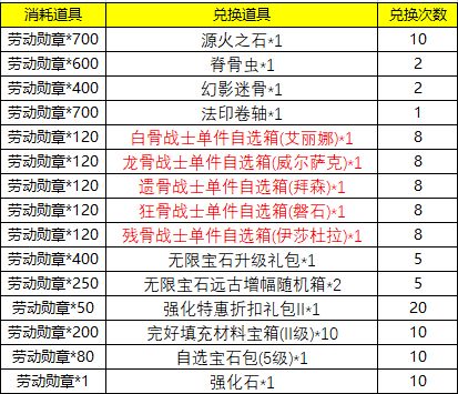 活动内容:活动期间收集劳动荣誉勋章,即可兑换新品传奇宝石等丰厚奖励,详情如下: