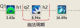 那么那些数据值得关注呢,简单来说就两条,1是施法点前的时间q,2是施法点后的时间h,这里的施法点指的就是战斗时间轴上技能图标出现的时间点,施法点前的时间包括了该技能的攻击充能、施法前摇等一切时间,施法点后的时间包括了该技能的蓄力吟唱、施法动作和施法后摇等一切时间