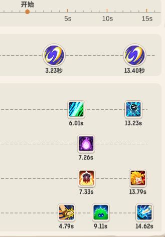 我们想针对boss进行技能搭配,首先必须对自身的技能进行了解,其次再去针对boss的特性和技能进行调整,因此我统计了技能在时间轴上的一些数据。