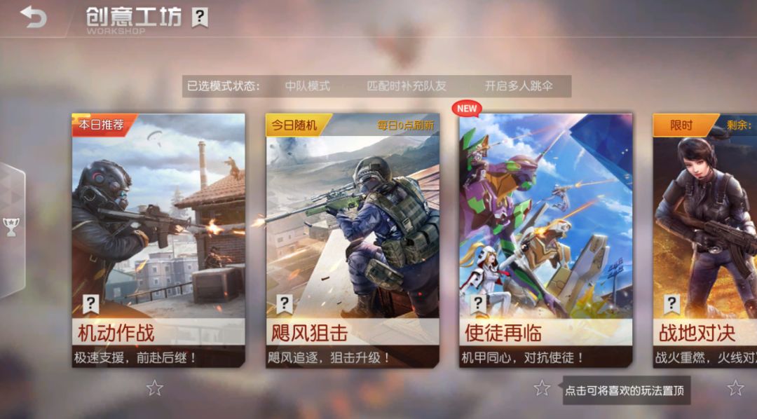 1.创意工坊界面新增“置顶功能”,可将自己最喜欢的玩法置顶。