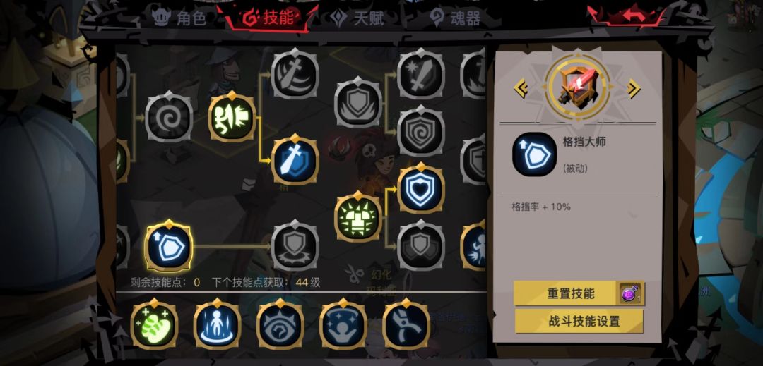 格挡:上面格挡流已经说了,可以选择,但是提升不大,同时你需要舍弃一个主动技能