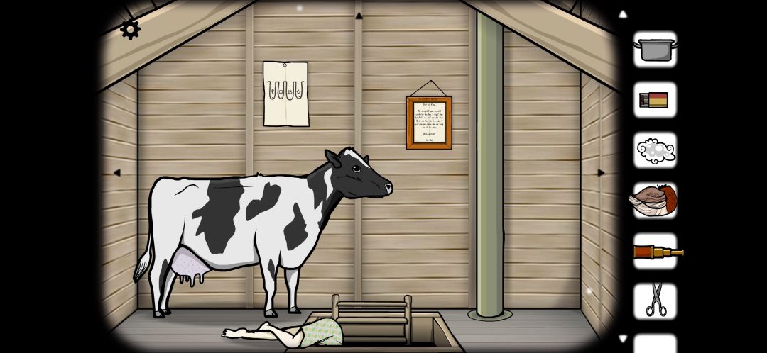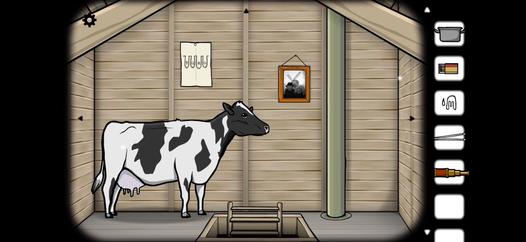 来到下一个场景,里面有一头牛。(话说你是怎么把这么大一头牛塞到阁楼里来的?)
