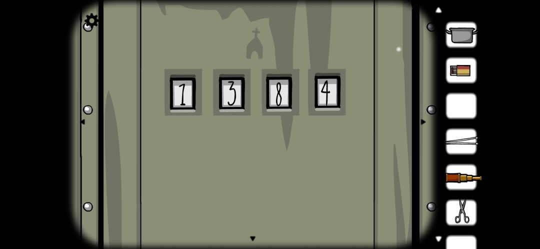 用望远镜观察一下之前看到的教堂,视角拉近后,在教堂的墙壁上得到数字“1384”。这应该就是密码门的密码了!