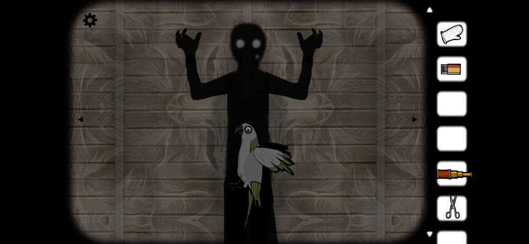 最后在纺织机旁边,我们找到了化身黑影的女人。(劳拉)黑影手里死死的抓着哈维,鹦鹉发出阵阵惨叫。