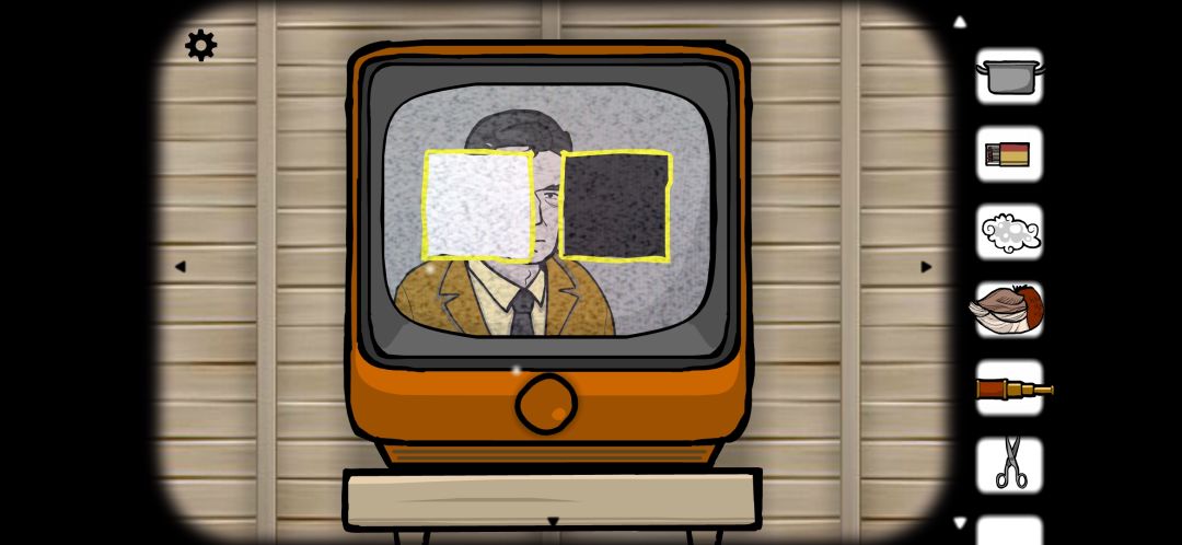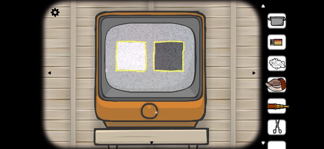 不断按电视的刷新按钮,就可以看到男人将黑白两个方块放进了电视上的方框里。(此处对应案件23的第二部分)