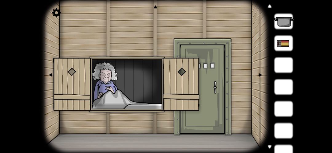 用钥匙打开密码门的柜子,柜子里住着一个白发苍苍的老奶奶。
