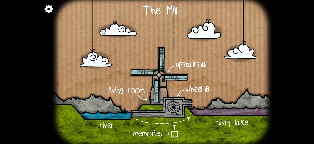 进入游戏是选关界面,游戏一共有三个房间。但除了起居室以外,阁楼还有齿轮所在的房间都处于封锁状态。