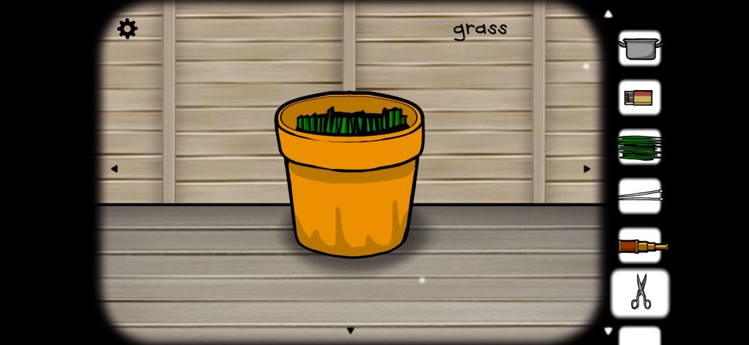 切换场景后,花盆里长出了浓密的绿草。用剪刀收割一波青草。