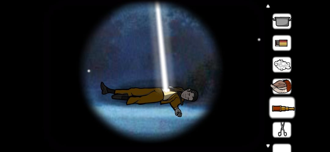 用望远镜观察,发现白光是从Dale侦探的身体里发出的。Dale莫名其妙的到达了锈湖(对应23号案件第三部分)