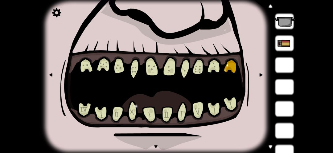 这个小游戏其实就是一个简单的加减运算。比如上排牙齿点击4和6,那么就要点击下排代表10的牙齿,使等式成立 。(并且每次等式最多只可以按下三颗牙齿,等式成立按下的牙齿就会变黑,误操作点击金色牙齿即可复原。)