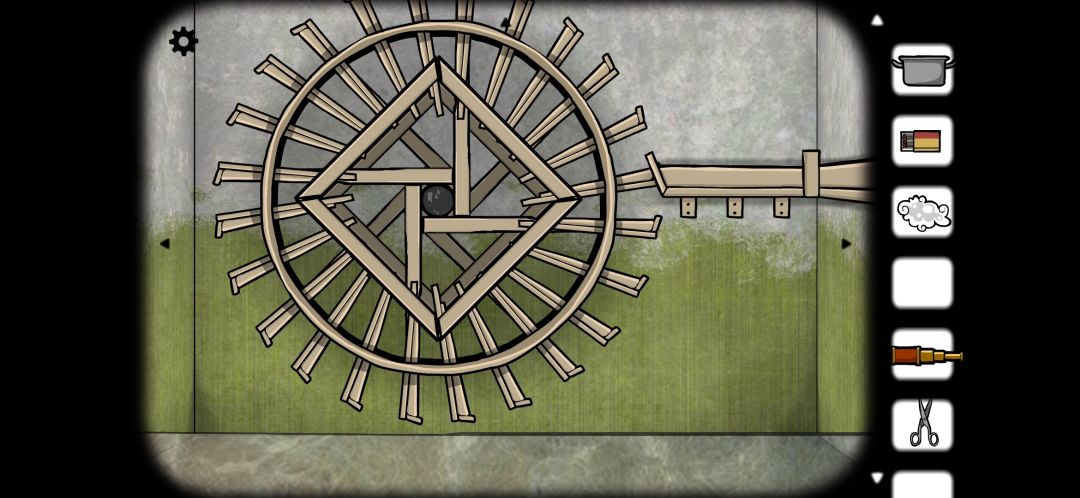 因为暴雨带来的大风,风车也开始跟着转动,齿轮开始运转。