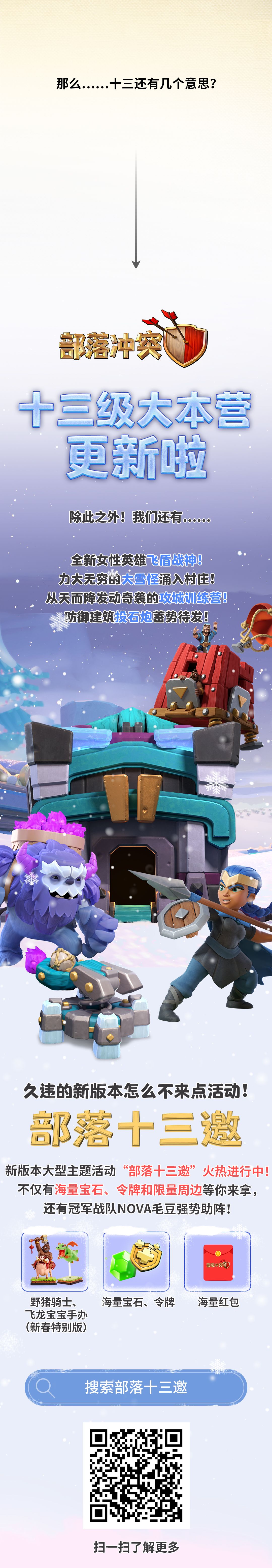 快去分享部落冲突13本更新的好消息,即有机会获得红包奖励和黄金令牌!