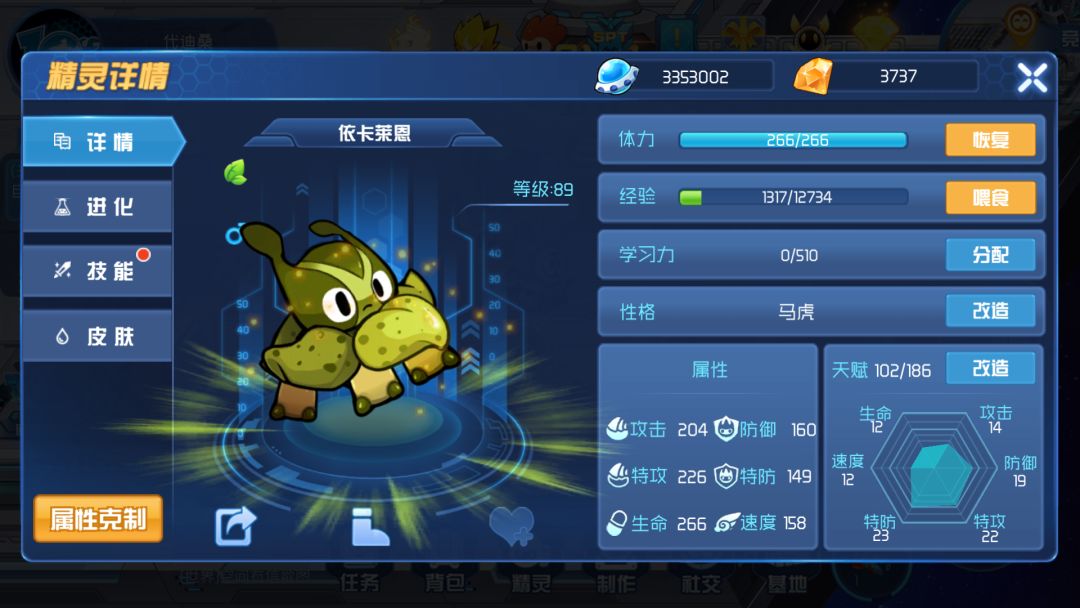 一粒种子,经历风吹日晒,渐渐破土而出,茁壮成长。依依也是如此,从初始渺小的自己,一步一步在历练中变得与以往不同,进化之后的依卡莱恩更加擅长巧妙运用植物的力量,或从中习得治愈之法,研究各种不同植物其细小的纹路,无以计数的植物各蕴藏着不同的力量,依卡莱恩一直潜心钻研其中奥秘,早已成为了代表着自然的使者,它自己可能都未曾发觉,通过不断的学习,依卡莱恩的力量已经有了独特的改变,这份执着会促使它愈加强大。