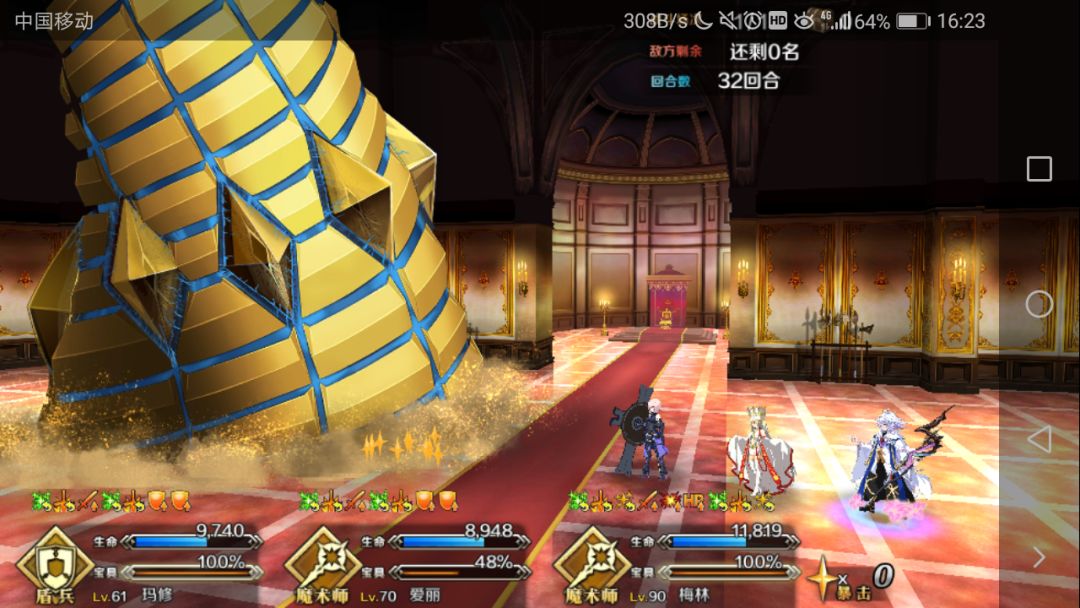 第六章沙漠打的第二次魔神柱拿着嫖来的黑狗,死活撑不过十个回合后来我突然觉醒了硬生生靠着阿瓦隆剑圣砍了过去,这时候我感觉到了两回合三大招的快乐