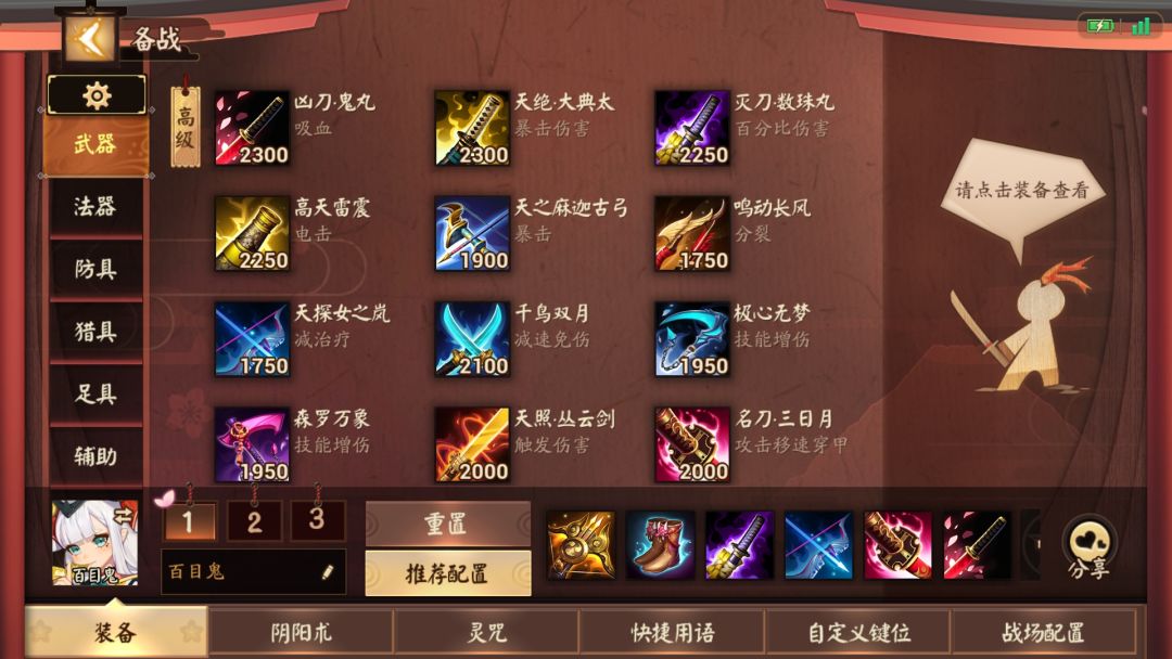 攻速很重要,由于技能伤害都是ap加成,所以可以选择法穿鞋,阵容控制或者刺客过多可以酌情选择护甲鞋或者魔抗鞋,另外百目鬼不能暴击所以攻速暴击不用多,所以我推荐天女,如果不喜欢出千鸟也行(主要是看被动)。个人还是推荐出一个物穿的,百目鬼的定位个人觉得像是ad刺客,而且她的被动不能共享长风,如果进不去后排,那么前排也是需要你快速消灭掉的。