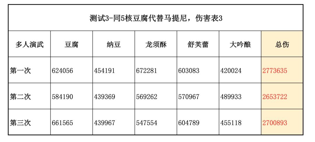 豆腐换马提尼,对团队伤害贡献,参考表3