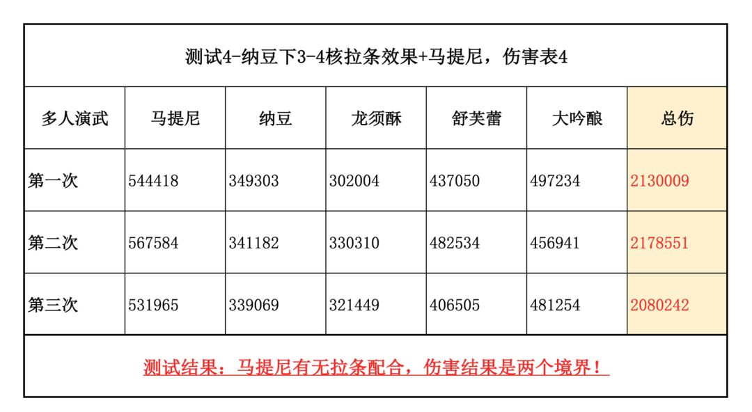 无拉条马提尼,对团队伤害贡献,参考表4
