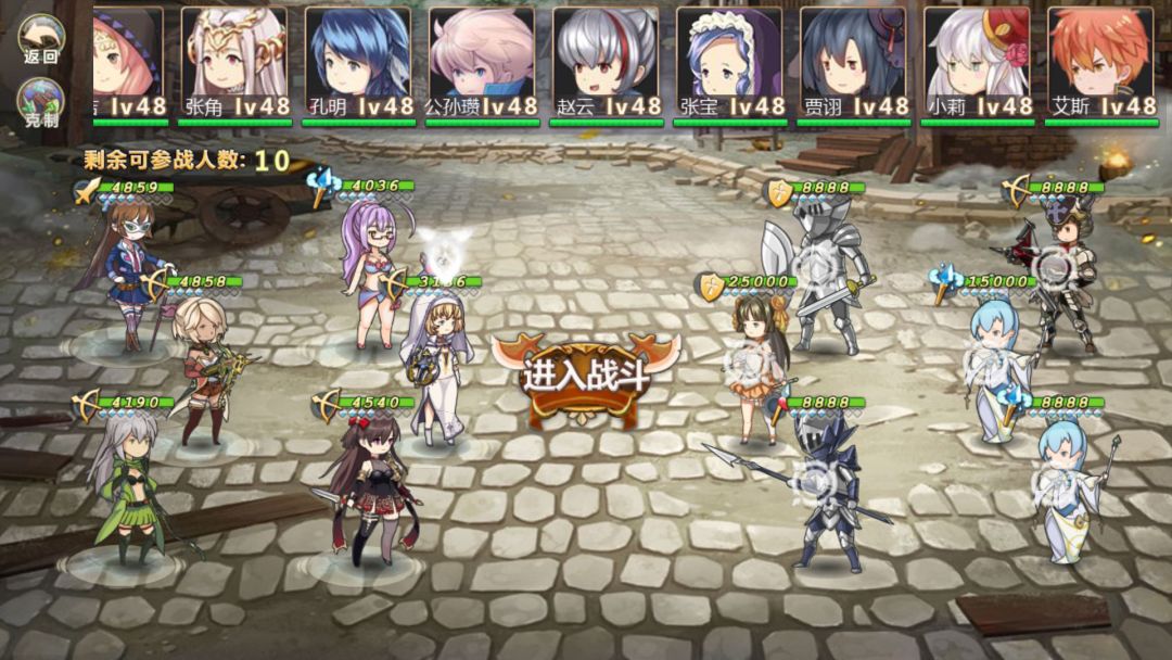 开局如图,前中炮灰可换1级法师,吸引火力。