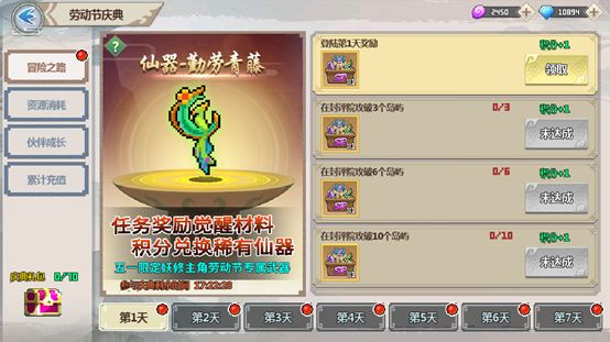 【劳动节庆典】活动期间您只要登录《一剑断念》游戏进入“劳动节庆典”页面,按照活动指定提示完成当日对应的活动任务,即可获得SR-SSR伙伴觉醒材料和庆典积分,达到指定庆典积分即可领取“勤劳之灵”专门用于强化【劳动节专属仙器“勤劳青藤”(妖修)和“勤劳宝塔”(神修)】!