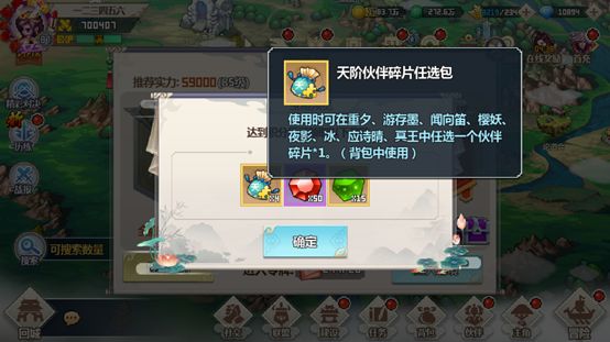 注:奖励中的低等水晶可集齐80颗兑换“精品伙伴包”(可开出精品级别SSR伙伴)、高级水晶集齐80颗可兑换“极品伙伴包”(随机获得夜影、重汐、陆犀、樱妖、应诗晴、冰、冥王、月念烟中的任意一名SSR伙伴。)。