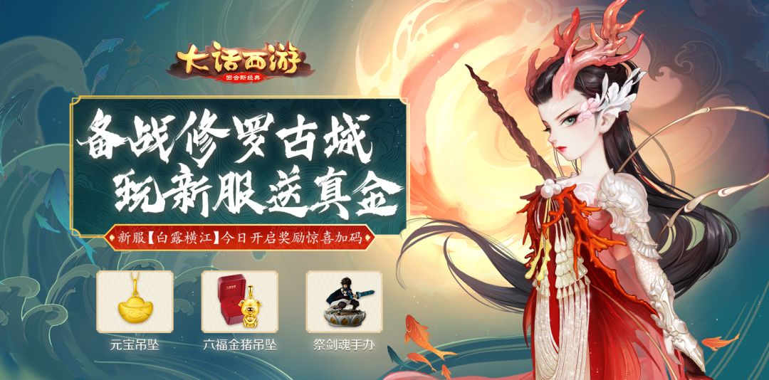 在带领侠士们参观了修罗古城全新地图的风光之后,大话还为大家带来了另一个好消息——道具服新服【白露横江】今日中午12:00正式开启啦!入驻新服不但能获得福利满满的新手礼包,玩家和好友共同冲级,还能够赢取限定称谓等各种好礼!