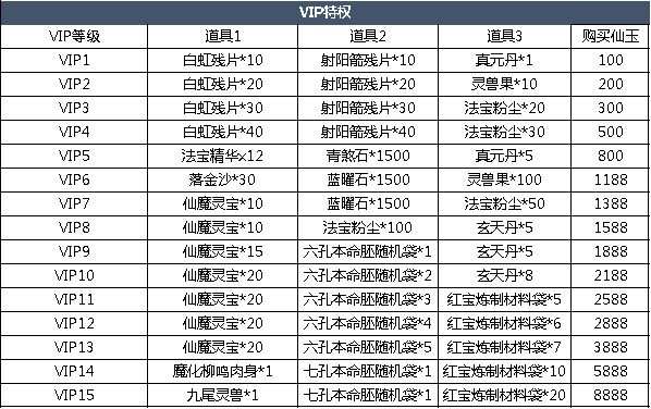 【注意事项】1.每个VIP等级段均可购买一次该等级段VIP大礼包。