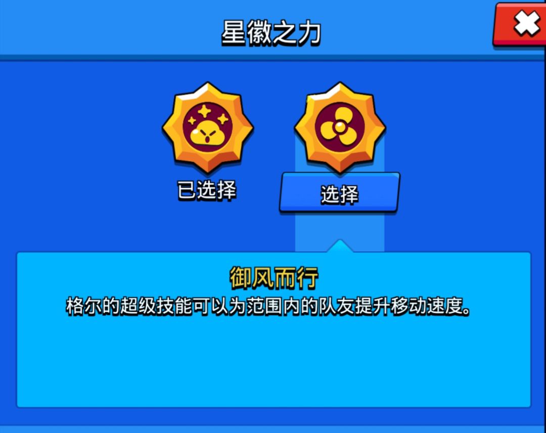 能使范围内的队友加速,和麦克斯的超级技能差不多,但是需要格尔的超级技能击中队友才能使队友加速。时间短并且加速效果也不明显。