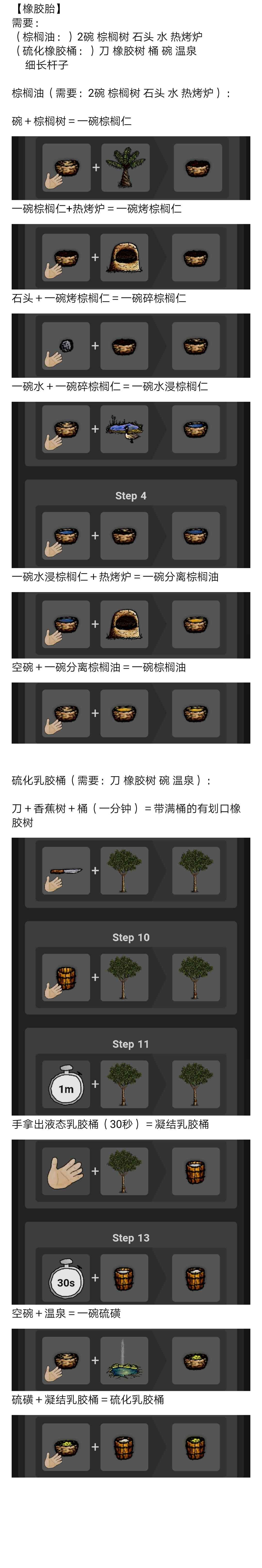 〈共需:1段铁 4钢锭 1扁石 2长直木棍 1生橡胶胎 2刀片 1短棍 1绳子〉