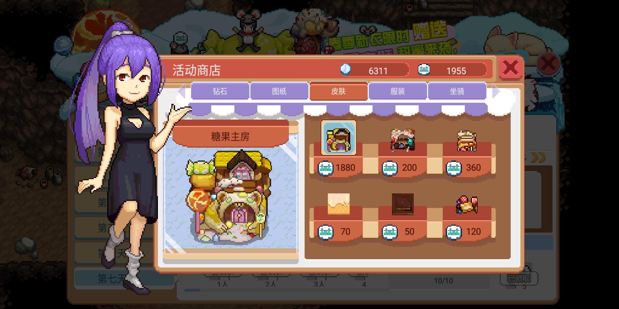 算然手贱换了藤墙图纸(260奶牛币好像),但是球球每天送的奶牛币的神助攻下,终于可以换糖果屋啦~