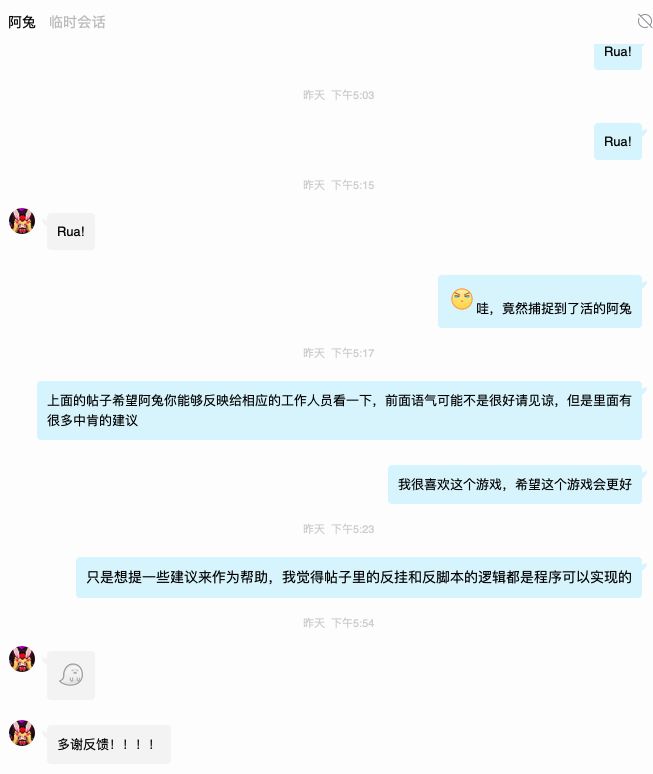 0.关于态度,开局我就想问,你们是鸵鸟公司吗,鸵鸟心态在贵游这里发挥的淋漓尽致,游戏有问题不发公告,部分补偿,暗地改动,举报无效,客服问题什么都是永不在线,然后两天后忽然一个自动回复您的问题已经收到我们将尽快处理。帖子里玩家提出bug和建议,拜托好歹回个话也好啊!问题多话回不过来,重要的问题在游戏里发个公告也好啊!你们说自己是小公司,人少,进度慢,缺技术,缺时间,我们不是不能理解,游戏刚刚开服,问题肯定是有的,但是你们好歹有点回复啊,让我们知道是个什么情况。什么发现的问题都是石沉大海,玩家乱做一团,但贵游仍是我自岿然不动,蚂蚱还一戳一蹦跶呢,你们是想卷钱跑路还是想认真做事,态度都没有,你让玩家怎么想?