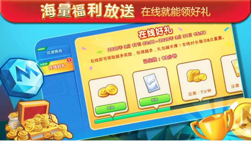 本次iOS开服为玩家们准备了在线大礼包,每日在线即可领取丰富大礼;还有“黄金UNO牌”掉落,收集可得炫酷勋章、金币、刮刮卡等丰厚奖励;房间模式限时免费,好友开黑自定义规则,更多乐趣等你来探索!