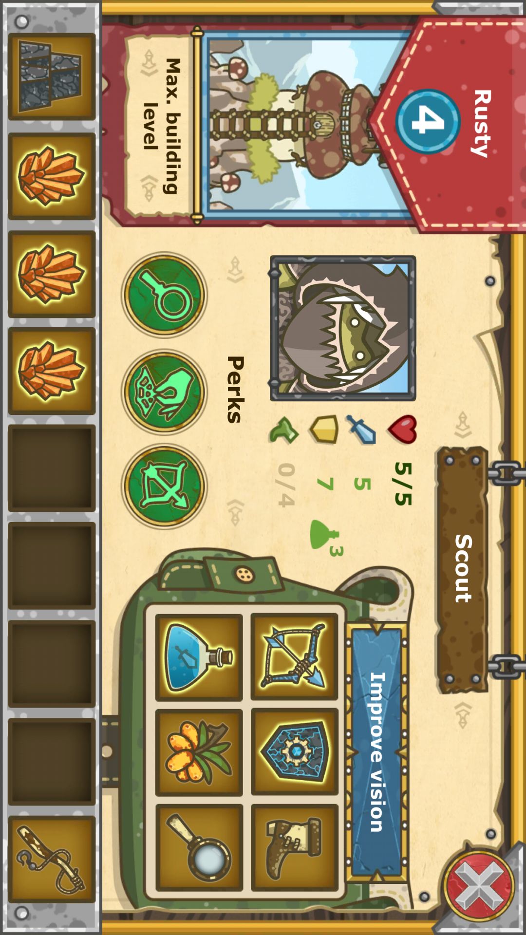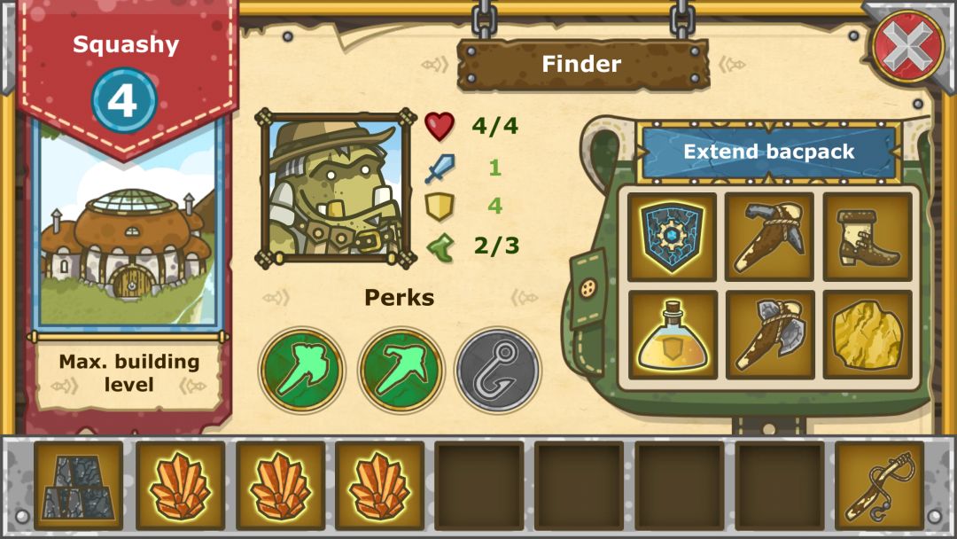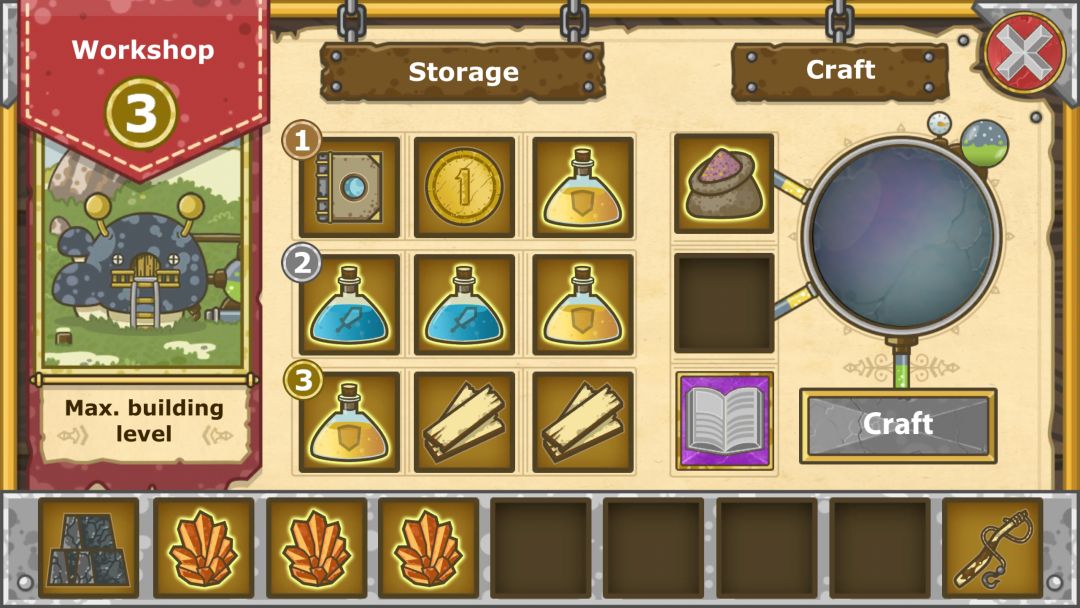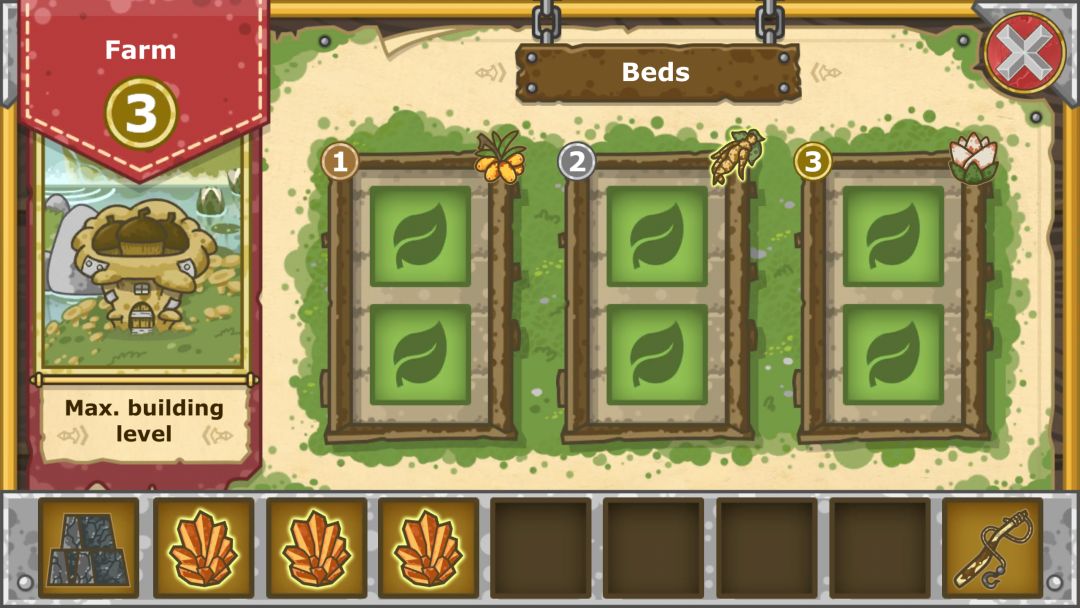 5.交易有点奸商,右上角有时间盘,点一下转一天(一格)转一圈交易会更新。升级商铺也会更新,前期坚果多,可以换材料升级再换材料。