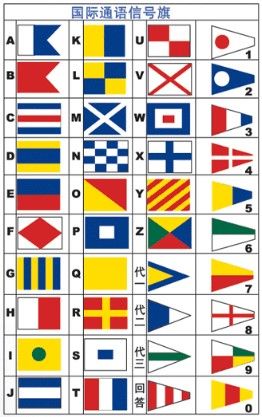 国际海事信号旗,是国际间共同的通信旗帜,由40面旗号所组成,包含字母旗26面,数字旗10面,代表旗3面,回答/简码旗1面。除了组合信文外,每面旗号皆有其代表涵义,含括了海上航行的各种情况。只要表示该状况之代表旗号,受信者即可掌握该舰动态。此通讯方式可跨越语言隔阂,且清楚传达用意,故成为国际间统一的信号语言。亦成为“旗语”。在装备着甚高频无线电话、全球海上遇险和安全系统(GMDSS)、卫星电话等先进通信设备的军舰与商船上,信号旗作为一种最简便,最可靠的通信手段仍在继续使用。