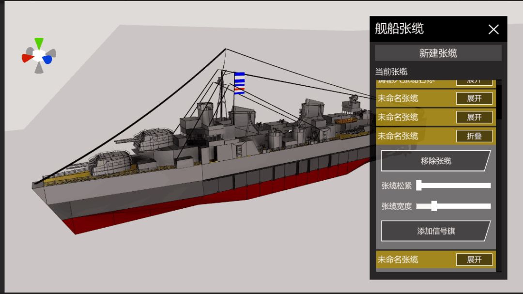 有部分体验过本内容的玩家依旧反馈只添加线缆显得还是有些单调,使用涂装板也较难模拟出信号旗的样子。于是乎我们便决定,在张缆功能中额外加入一些可以悬挂的旗帜,信号旗就是之一。(如获得张缆使用权限的玩家可以直接在张缆系统中添加信号旗)
