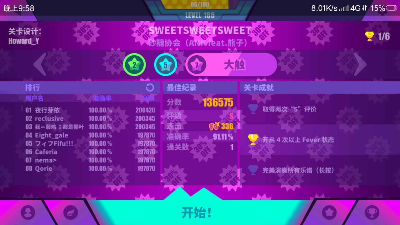 打开MD,玩了几首曲子后中途联网,随缘点开一首基础包曲子的大触(加载界面结束后)它就变成了今日限免曲包里的一首歌(当时以为自己对那首歌的记忆出现了偏差)