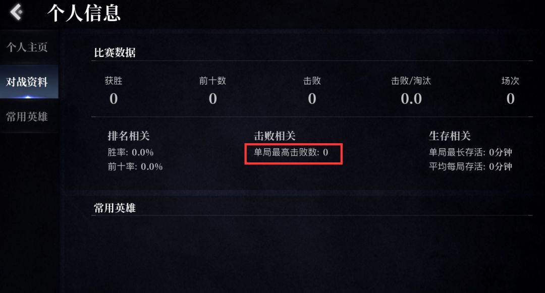 进入游戏点击左上角头像—在下图红框内查看最高击败数。